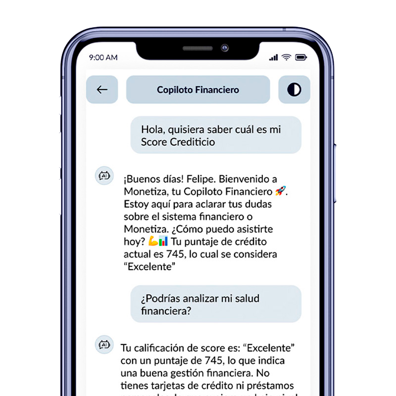 Solo descargar el App de Monetiza, registrarte y consultar tu salud financiera. Nuestra IA te guiará automáticamente.