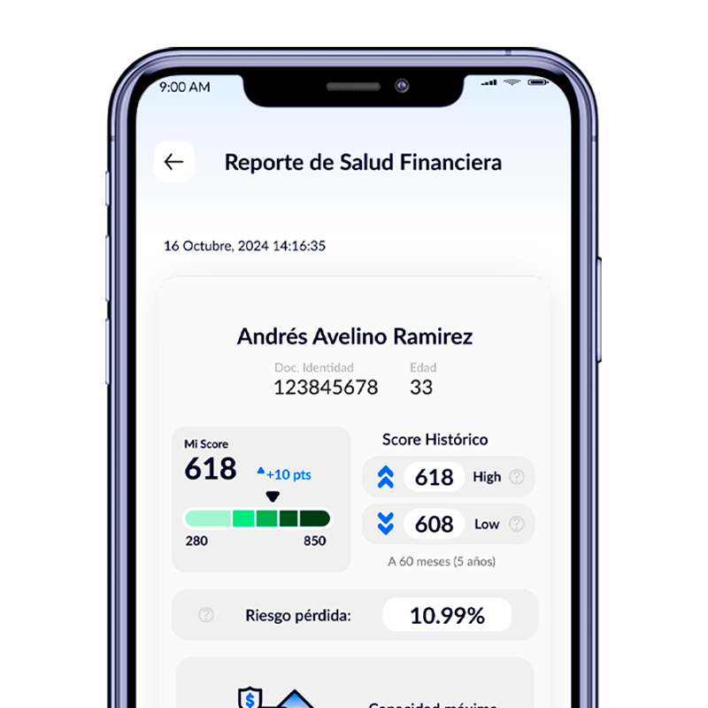Podrás ver tu score crediticio, tus hábitos de pago, deudas activas y otros factores clave que afectan tu perfil financiero.